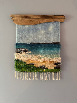 By that time I had repainted the walls all the way through, the wood floor was completed and artwork was rehung. Holes were filled and woodwork was tarted up. I love the grey and the way it sets off the handmade wool weave picture we bought together on the Outer Hebrides, and the other things we have picked up along the way.