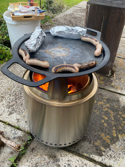 For the third night, the Solo fire pit was requested by all for both atmosphere and BBQ. It was still mild long into the evening with few midges, although we did Smidge up! We threw the grill pan on the top and got great results straight away. The Wee Butcher truly has the best sausages we have ever eaten. The term a 'slug of wine' takes on a more literal meaning.