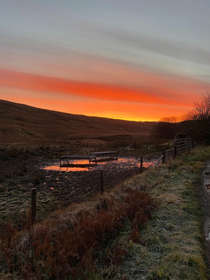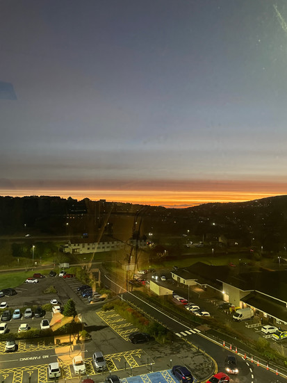 Having had another sleepless night in the reclining chair I was awake early enough to appreciate the beautiful sunrise. When I pulled up the blind and saw the splendour of the morning it made me exclaim out loud and I immediately felt tearful, but in a good way. I wanted John to see it, because it felt like it had been created for us, and to see if it would lift his spirits. So I took his oxygen tubes out of his nose, released the bed brakes and wheeled him as far as I could so he could see about half of it. I'm not sure he appreciated it as much as I hoped. Later on Nigel showed us his photo of the sunrise at our house - gorgeous.